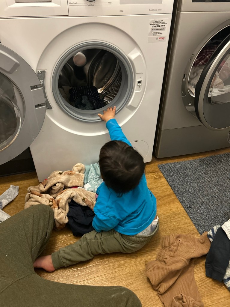 Laundry is similar. Taking clothes out, putting them into a basket, handing things over. Small roles, but still part of what’s happening.