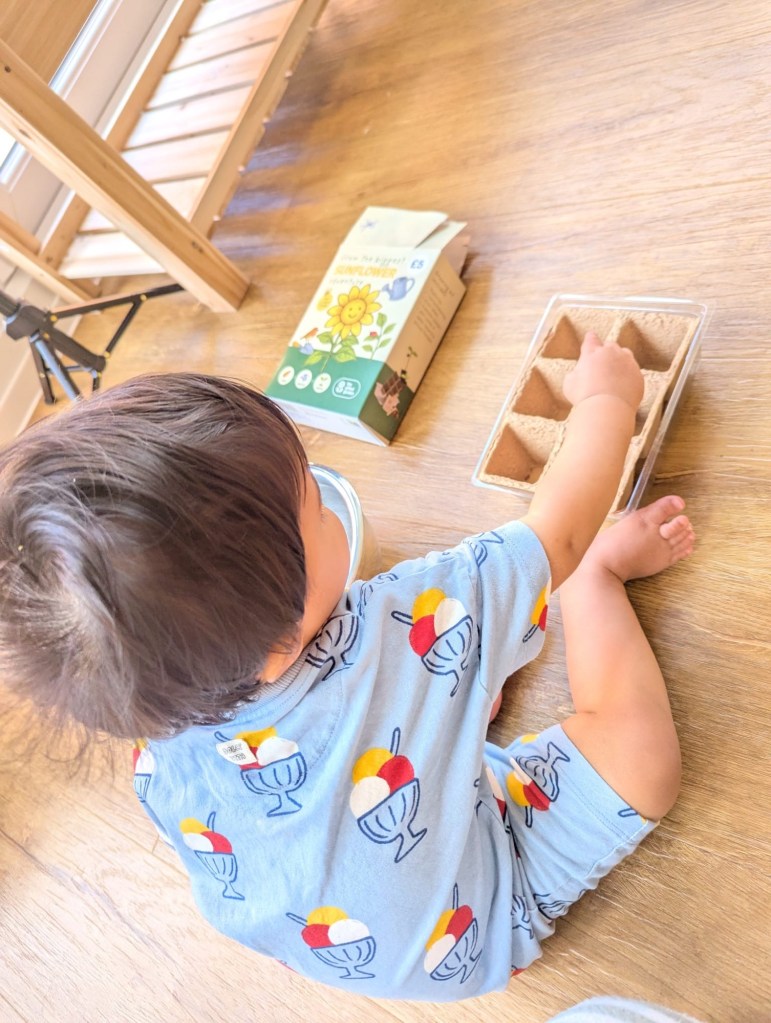 I’d kept putting it off—not because I didn’t want to do it with him, but the timing never quite worked. It was always right before dinner, or just before a nap, or when we were about to head out. But today, we actually had the time to sit down and do it properly, and with spring finally here, it felt like the perfect moment to plant something and watch it grow.